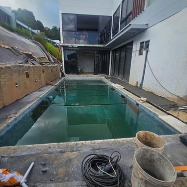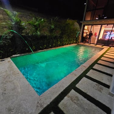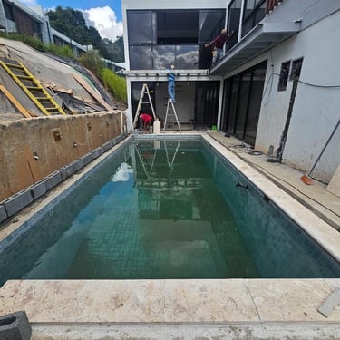 PISCINA DE FIBRA DE VIDRIO EN TAMAÑO 8m X 3.5m X 1.40m DE PROFUNDIDAD EN GREEN CITY, con renovaciones. CREADA EN EL TIEMPO PRECISO PARA OTRO CLIENTE SATISFECHO.