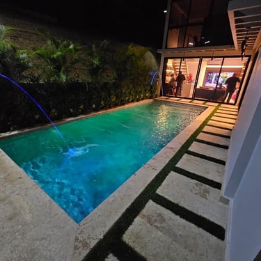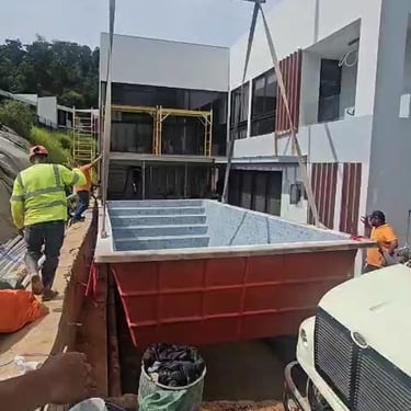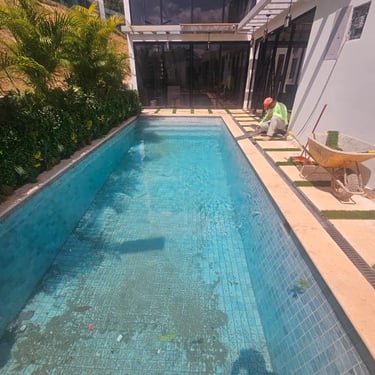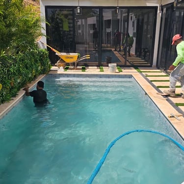 PISCINA DE FIBRA DE VIDRIO EN TAMAÑO 8m X 3.5m X 1.40m DE PROFUNDIDAD EN GREEN CITY, con renovaciones. CREADA EN EL TIEMPO PRECISO PARA OTRO CLIENTE SATISFECHO.